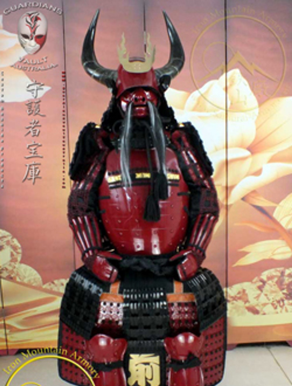 The Gashira class features a more traditional Gendai design over kachi class and include features such as, real animal hair, genuine leather, removable or interchangeable nose, brass fittings, shoulder padding with kikko (armor plating), opposable thumbs, leg support on haidate, extra materials, fittings, riveting, lacing and included armor storage / display box (yoroi bitsu) with stand.