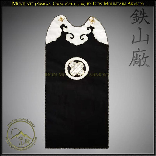 Mune-ate (chest protector) is a kind of apron/chest protector, worn by samurai/ fireman as well as Teppo Tai Samurai and ashigaru (special matchlock rifle troops), commonly worn during Edo era. While on fire patrol, or of course fighting fires, samurai would wear a kaji haori (wool fire coat), kaji muneate and kaji hachigane (headband), often made from wool, satin, ramie (linen fiber) and lined with thick paper to add stiffness.